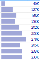 In other words, the first measure gives us a line on the chart. And the second measure gives us either a line (if we didn’t select a certain year on the bar chart) or one point – if we selected a year on the ar chart.