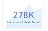 Two visuals. A card with a measure to show maximal number of meals served with transparent background (white with 30% of transparency) is placed in form of stacked area chart that shows how numbers of meals served has been changing from year to year.