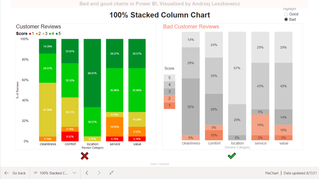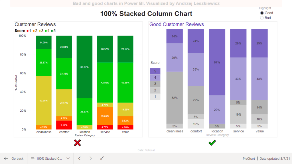 100% Stacked Column Chart – Bad and Good Charts in Power BI