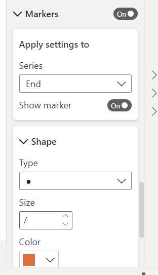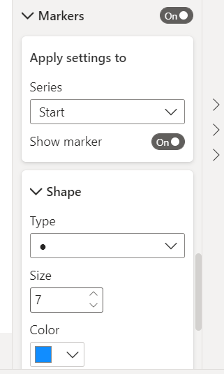Normally I would use (_End – _Start) / 2 + _Start to calculate the middle point between _Start and _End. But we can position data labels either below or above the data point. And I want the data point marker to be invisible, but the data label to be visible and placed in the middle of a error bar. This is what _Shift variable does. I display data labels above data points and use – _Shift to move the data point a little bit downward.