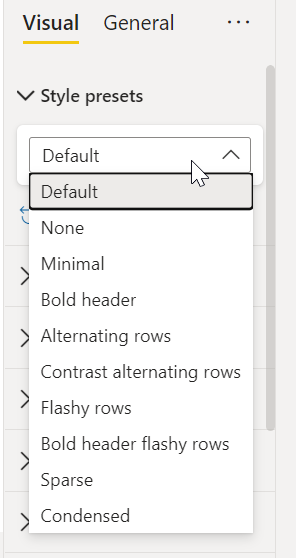 Save it. Re-apply it to the report. Keep style preset = “Default” in the first table and change it to “Minimal” in the second table.
