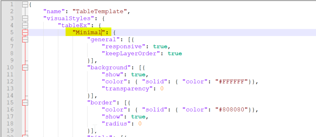Let’s go back to the Table.json and change “*” style name to “Minimal”: