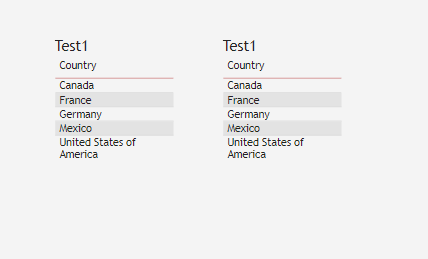 For a test I just took https://github.com/MattRudy/PowerBI-ThemeTemplates/blob/master/Table.json theme JSON and applied it to a report with 2 identical tables: