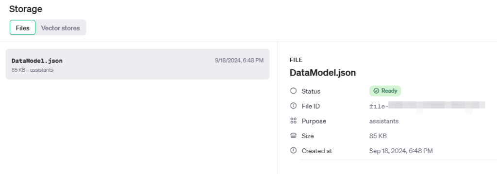 Otherwise the JSON file will be uploaded into an Open AI storage without saving a local copy.